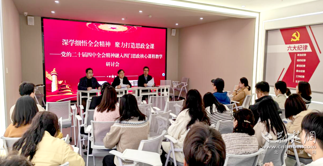 荆楚网(湖北日报)(记者齐一轩、撰文李霞、陈长风、摄影王其昌)为深入学习贯彻党的二十届四中全会精神,明确全会精神融入各类思想政治课的路径和方法,解答“如何进入”和“党的思想理论转变的最新成果的有效性”,近日,湖北城市马克思主义学院建设职业技术学院召开“深入学习领会全会精神”,在围绕创建“思想政治金课”集体备课的理想信念基础上,学校党委副书记胡军、副校长曹毅、全体师生代表齐聚一堂,共聚一堂。探索如何在课堂和政治课堂上贯彻落实全会精神。